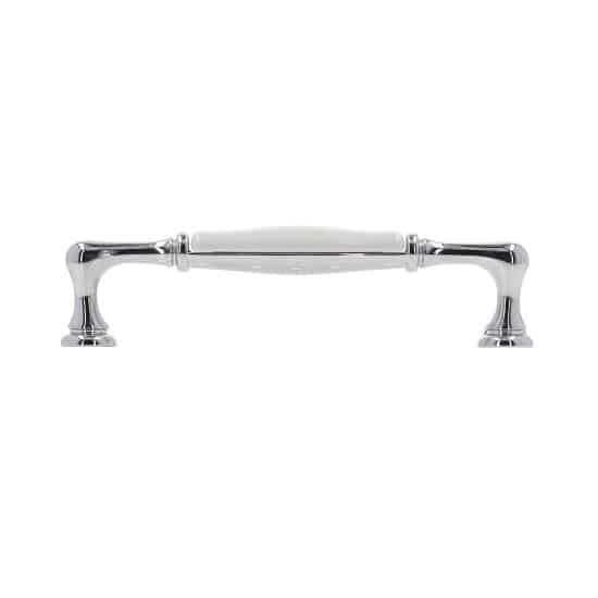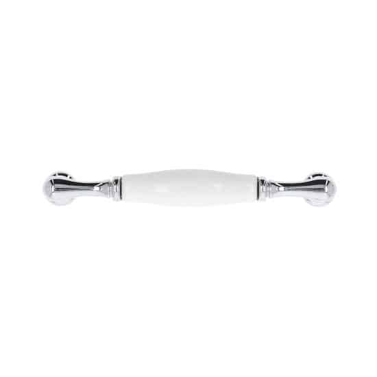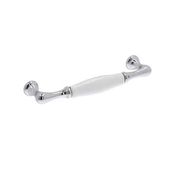 Poignée pour meubles en zamac et porcelaine Entraxe 128 chrome poli